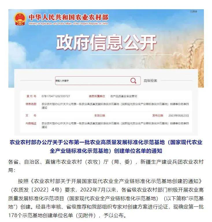 全國首批農業(yè)高質量發(fā)展標準化示范基地公布 嘉立荷牧業(yè)公司榜上有名