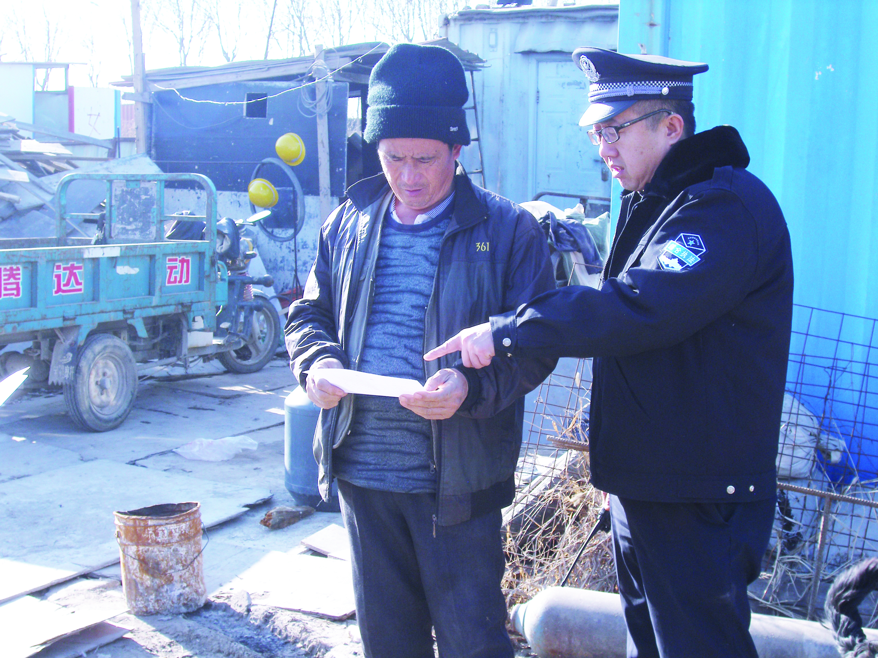 2016年1月,針對濱渠里小區(qū)小商小販違法占地、非法經(jīng)營等行為,褚鳳林帶領隊員們又展開了聯(lián)合清理行動。清理行動歷時三天,恰逢天津這一年冬天最冷的三天,在公司安保科和社區(qū)部同事們的配合下,褚鳳林和隊員們一起冒著嚴寒始終戰(zhàn)斗在清理行動一線,對小區(qū)內(nèi)小商小販私搭亂蓋的房屋以及私自售賣食物的行為進行了清理,降低了火災等安全事故發(fā)生的概率,還給農(nóng)場居民一個良好的生活環(huán)境。